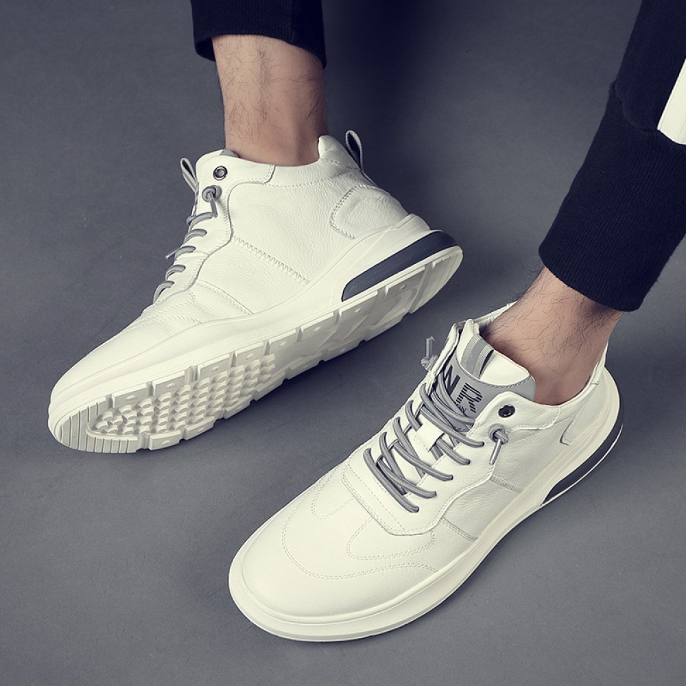 Summer Men's Board Shoes Soft Leather White Trendy Shell-Toe Daily Casual Shoes